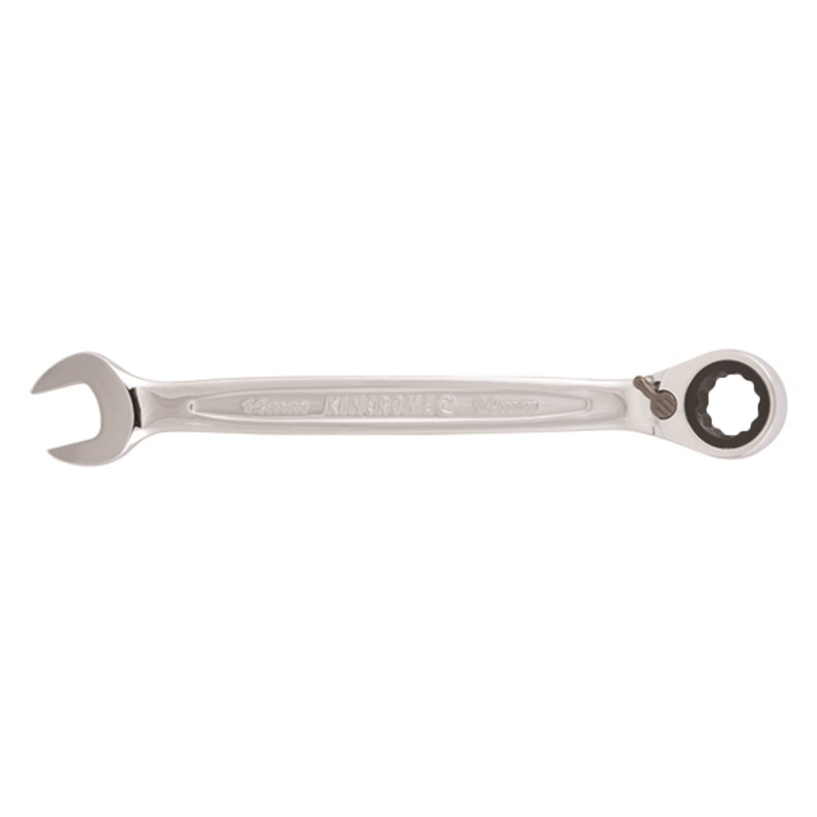 The Kincrome reversible gear spanner has all the benefits of standard spanners and more. The strong fine gear ratcheting ring end needs as little as 2.5° of sweep to move the fastener, a standard fixed ring end needs a minimum of 30°, or 12 times the area. Kincrome Gear Spanner ratcheting ring end has a Peripheral Drive™ configuration that virtually eliminates the rounding off of fasteners. The market leading narrow and thin head, combined with fine gear tooth design makes the Kincrome gear spanner suitable for working in tight and hard to access areas where a ratchet and socket will not fit. The reversible mechanism allows you to change the direction of the gears via the switch, and the 13° offset mimics the characteristics of a conventional combination spanner.
