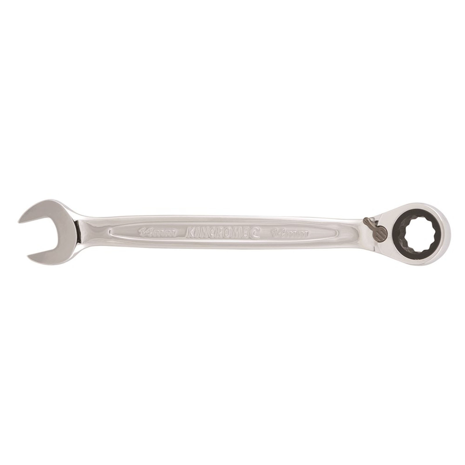 The Kincrome reversible gear spanner has all the benefits of standard spanners and more. The strong fine gear ratcheting ring end needs as little as 2.5° of sweep to move the fastener, a standard fixed ring end needs a minimum of 30°, or 12 times the area. Kincrome Gear Spanner ratcheting ring end has a Peripheral Drive™ configuration that virtually eliminates the rounding off of fasteners. The market leading narrow and thin head, combined with fine gear tooth design makes the Kincrome gear spanner suitable for working in tight and hard to access areas where a ratchet and socket will not fit. The reversible mechanism allows you to change the direction of the gears via the switch, and the 13° offset mimics the characteristics of a conventional combination spanner.